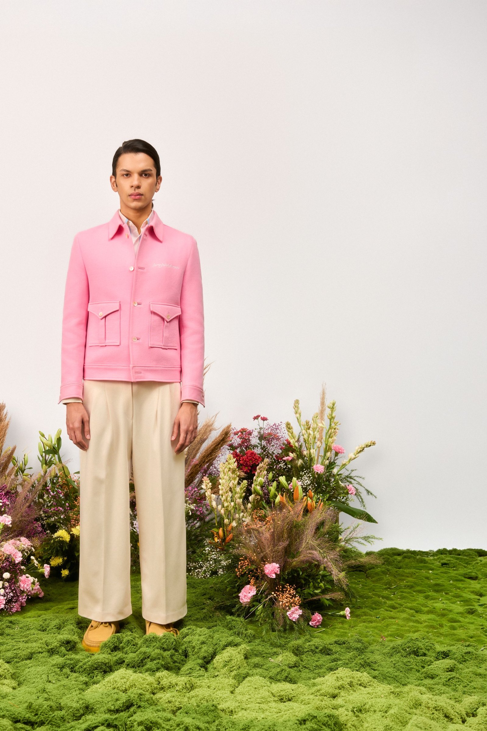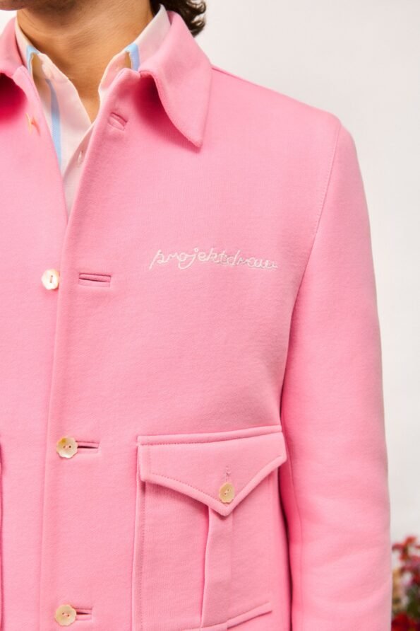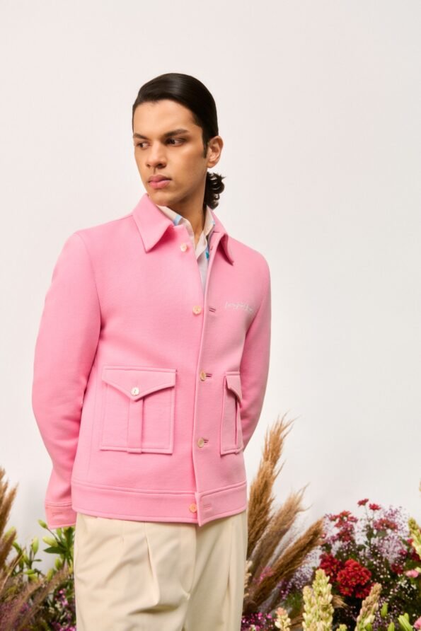 Crafted from 400 GSM French Terry cotton in pink, this jacket features