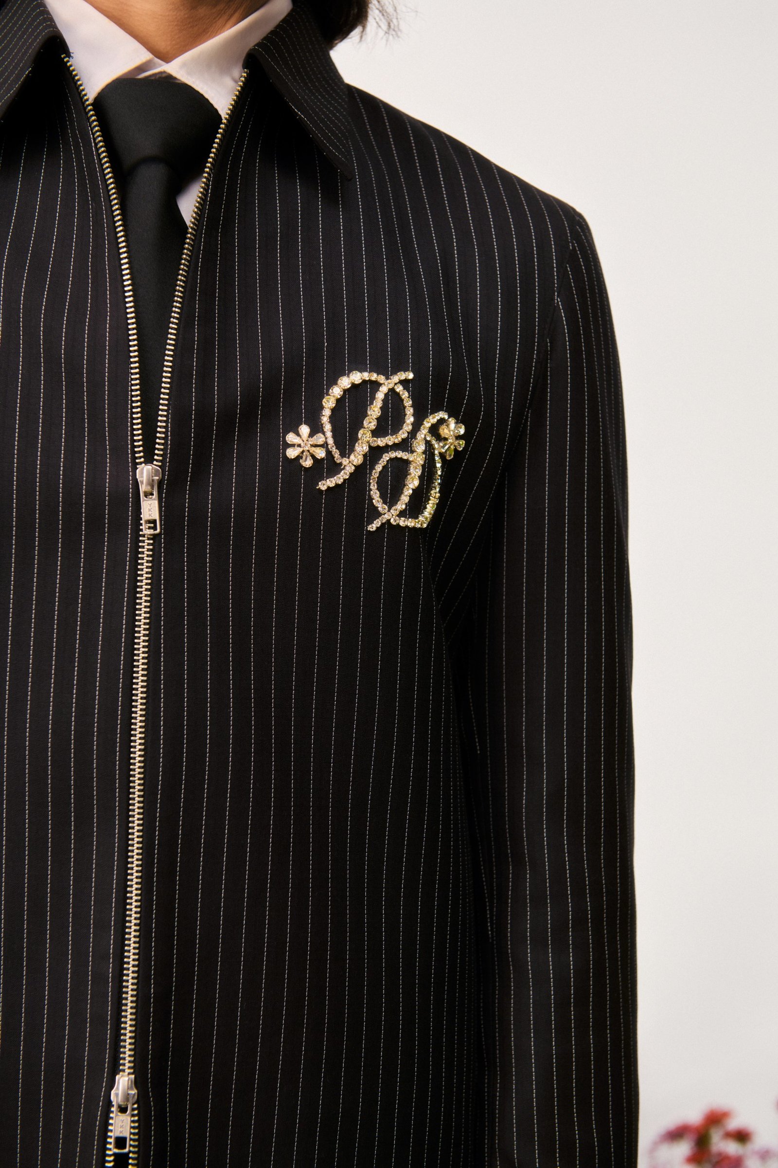 PD logo formed using rhinestones.
