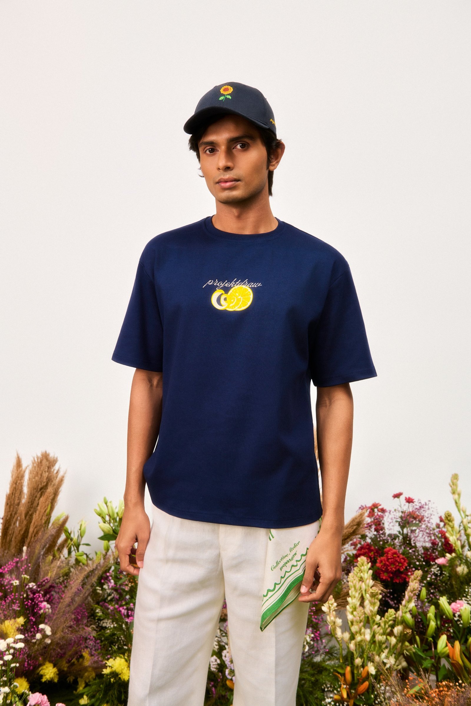 Crafted from premium 250 GSM interlock fabric. The piece features lemon-inspired prints on the front and back, finished with subtle projektdraw embroidery on the chest. Smooth, breathable, and designed for effortless everyday wear.