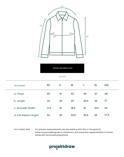 With the attention and care invested in each jacket, we kindly ask for 15-20 business days to ensure perfection in processing your order.