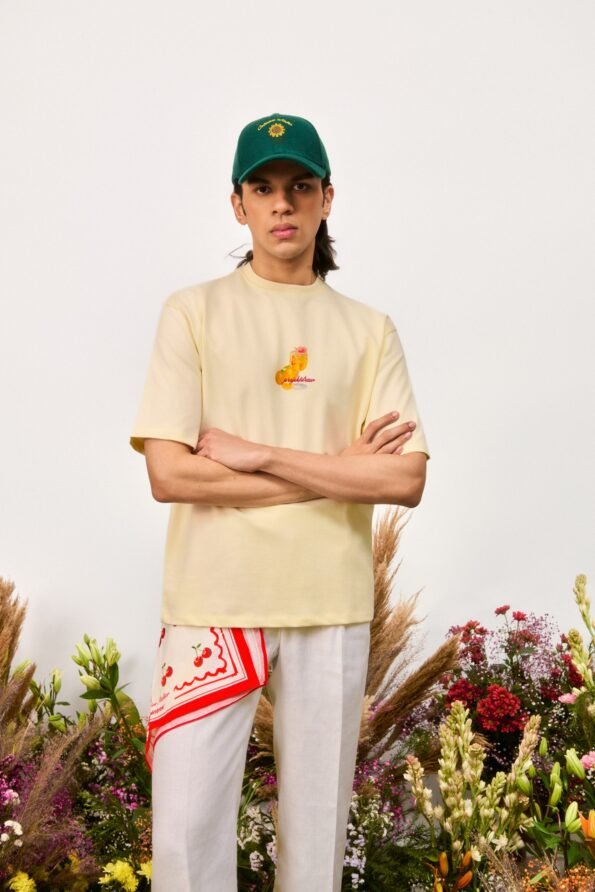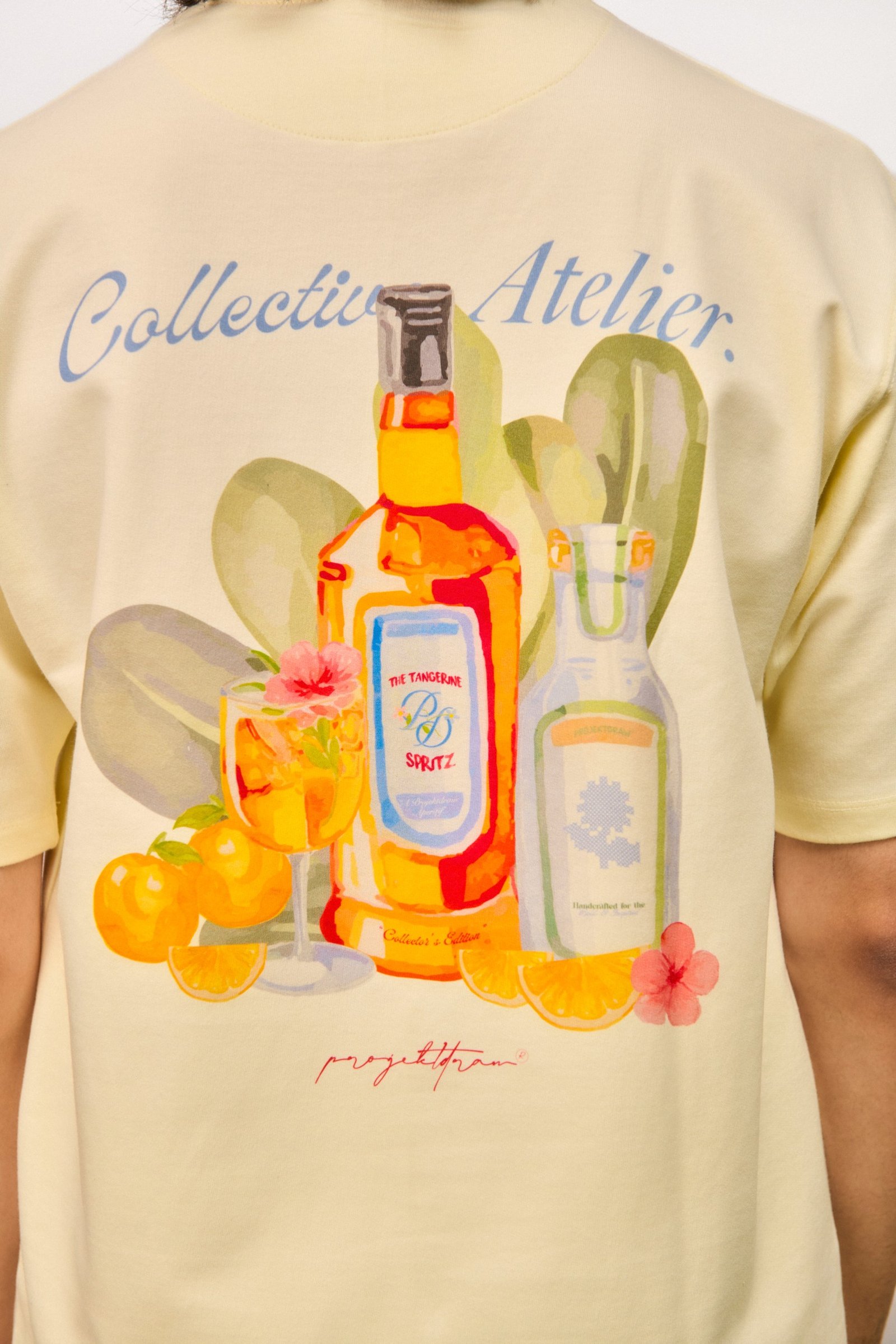 Crafted from 270 GSM terry cotton fabric in an off-white tone. Features DTG artwork on the front and back inspired by the Aperol Spritz moment, finished with subtle projektdraw signature embroidery on the front.
